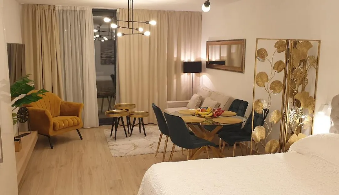 El alojamiento está equipado con climatizador, un patio y TV de pantalla plana con canales vía satélite en los cuartos. El apartamento tiene 1 dormitorios. El apartamento Golden Studio - Private Parking está equipado con 1 cuartos de baño con un secador de pelo, una ducha y toallas de baño.